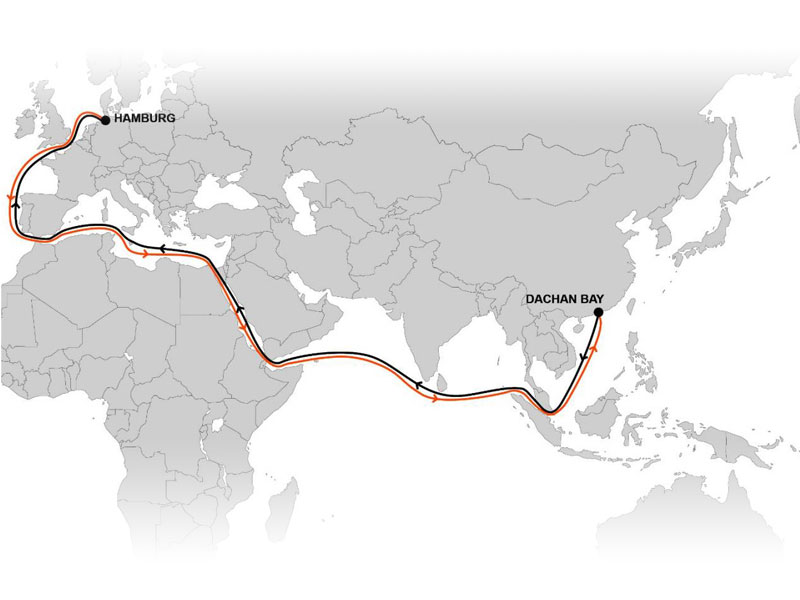 El CGX proporcionará salidas semanales regulares con un tiempo de tránsito sólido de 27 días y el primer viaje hacia el oeste (Dachan Bay a Hamburgo) está programado para principios de abril de 2022, y el primer viaje hacia el este (Hamburg a Dachan Bay) para principios de mayo de 2022.